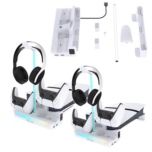 Horizontal Stand Wear Resist RGB Light Cooling Station Dual USB-A Console Headset Holder Compatible with Play Station 5 Console